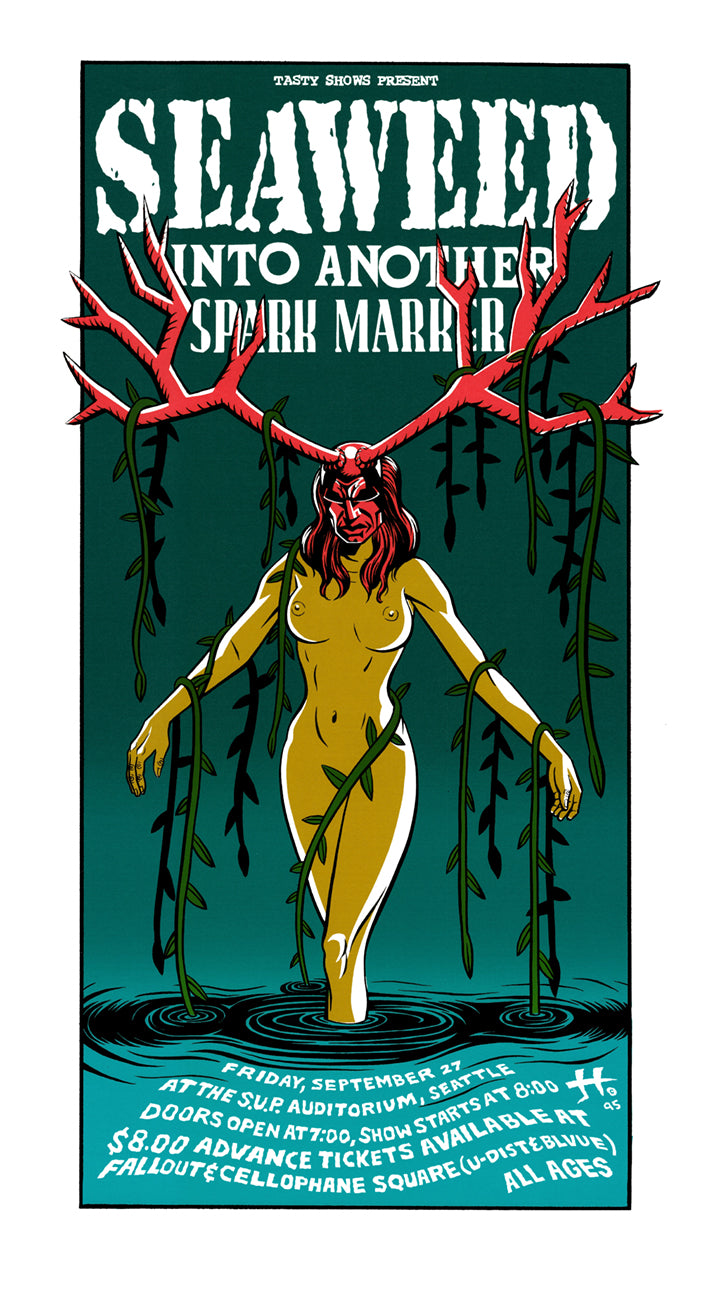 This is an original Seaweed poster from my personal archives. I created every letter by hand on rubylith acetate with an X-Acto blade—the same lo-fi technique that I used for all my posters in the '90s. Hand made with actual blood, sweat and tears.